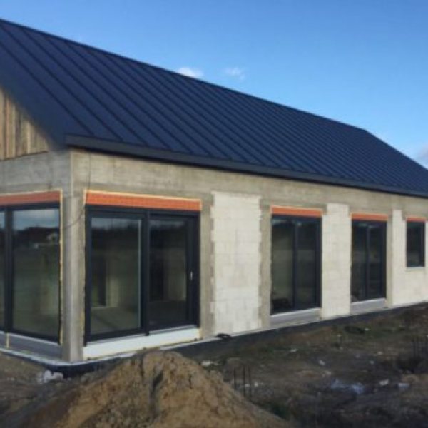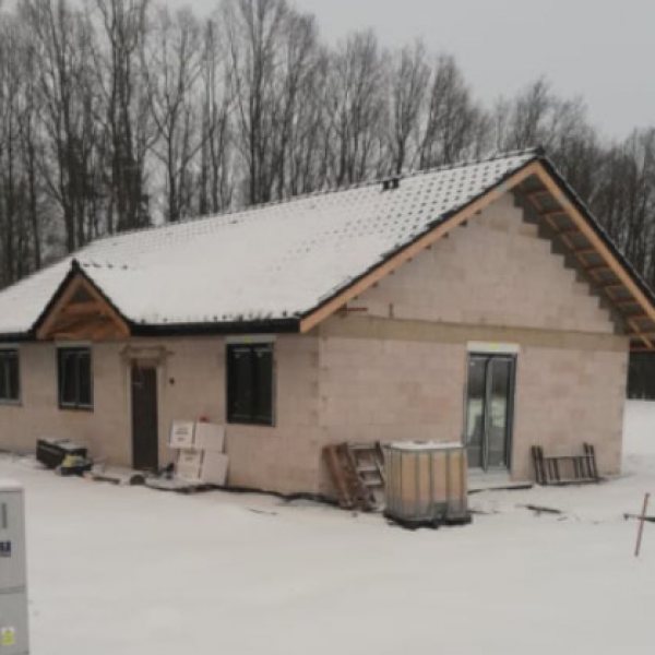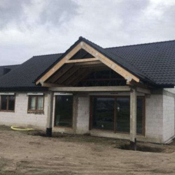 Milowym krokiem przy budowie gotowego projektu domu jest doprowadzenie inwestycji najpierw do stanu zerowego, a później do stanu surowego otwartego. Wówczas pod budowany dom wylewamy fundamenty i zadbamy o ich izolację. Następnie dom wyposażamy w murowane ściany nośne, kominy, strop nad parterem i schody wewnętrzne. Wykonamy więźbę dachową, pokrycie dachu oraz montaż rynien. W niektórych przypadkach na tym etapie budowy dom ma okna dachowe. Szczególną uwagę skupiamy na budowie domów jednorodzinnych, bliźniaków i garaży murowanych.